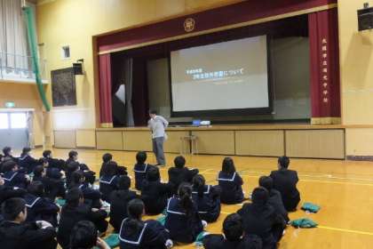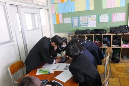 今日の5、6限目から2年生の校外学習の取り組みがスタートしました。まず5限は体育館で全体でオリエンテーション。一日乗車券を使って大阪市内の施設巡りをすることが伝えられました。そして6限は各クラスに分かれて、タブレットを使いグループごとに自分たちの行く施設を決めたり、グループの決めたり、コースを考えたりしました。