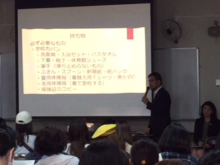 今日は一年生の一泊移住の保護者説明会が本校多目的室で行われました。