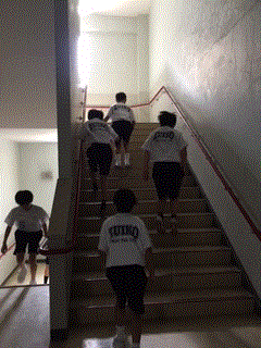 階段ダッシュや腹筋・背筋など体力アップに努めて、残りの時間でラリーの仕方を先輩から教わりました。