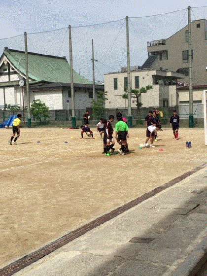 ラグビー部は先生の指示に従いながら真剣に走っていました。
