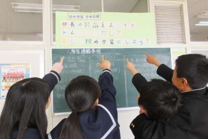 それは、「班長の指示をよくきき、みんなで協力して、楽しい校外学習にしよう!」です。その素晴らしい目標をみんなで意識できるよう、各フロアーに掲示されました。この目標が達成できるよう、頑張っていきましょう。