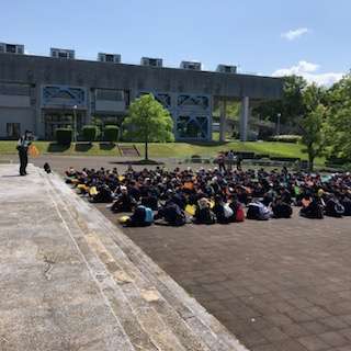 ウォークラリーの説明を行っています。さあスタートです!