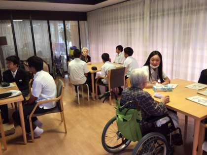 施設についたら、まず施設リーダーが利用者の方に代表であいさつをして、全員が自己紹介をしてから利用者の方と数人ずつで話をしました。さまざまな話を聞き、質問をしていく中で普段はなかなか触れ合うことのできない利用者の方と貴重な時間を持つことが出来ました。