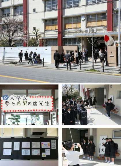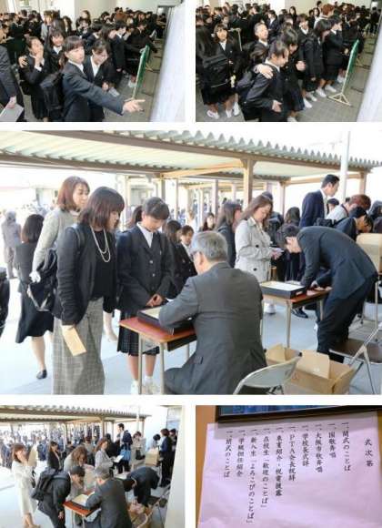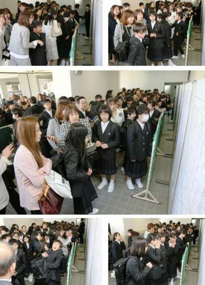 73期生新1年生220名6クラスが入学し、瑞光中学校生としてスタートします。新しい制服で元気に登校し、クラス発表、受付をすませました!