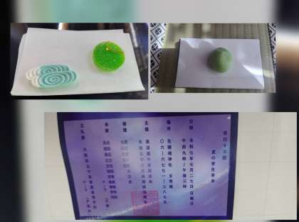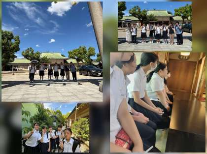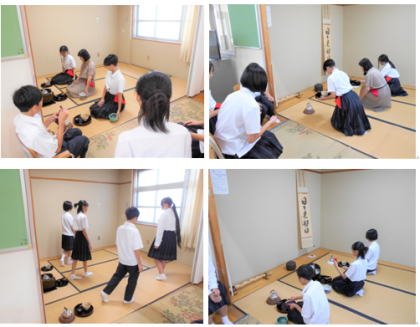 1年生は、畳の上でお作法の練習を練習するのは今日が初めてです。下の2枚の写真は、7月27日に生國魂神社で行われた「夏の学生茶会」に参加した時の写真です。
