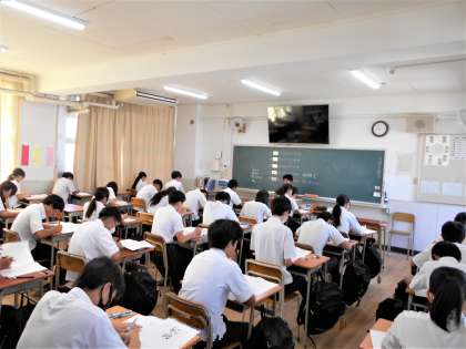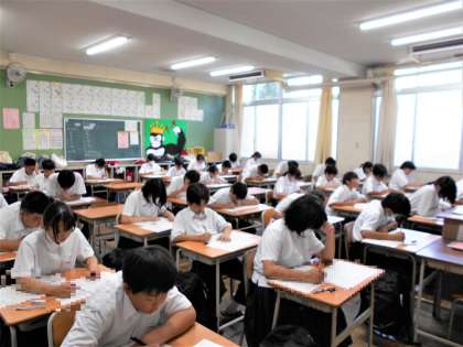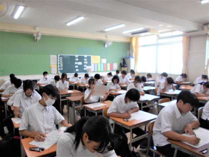 3年生は、チャレンジテスト。1・2年生は、実力テストに臨んでいます。
