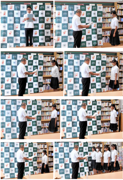全校集会に先立って、夏休みに行われた1ブロック陸上大会(女子)の表彰を行いました。