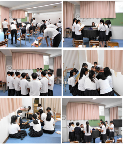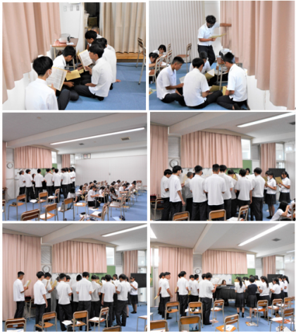 3年生音楽の授業の様子です。文化祭で行う合唱コンクールで歌う課題曲の練習をしています。ストレッチをして体をほぐしたあと、パートごとに分かれて練習をしています。授業の終わりには、全パートを合わせての合唱となりました。