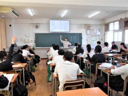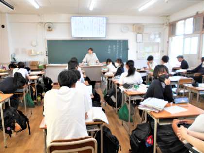 3年生国語の授業の様子です。「万葉集」について学習しています。