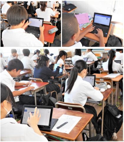 2年生では、水曜日の朝の時間を使って「デジタルドリル」の取り組みを始めています。「デジタルドリル」とは、自分が復習したい科目や単元について問題を解いていき、自動採点してくれるドリルのことです。10分ほどの学習タイムですが、積みあがると大きな力になっていきます。