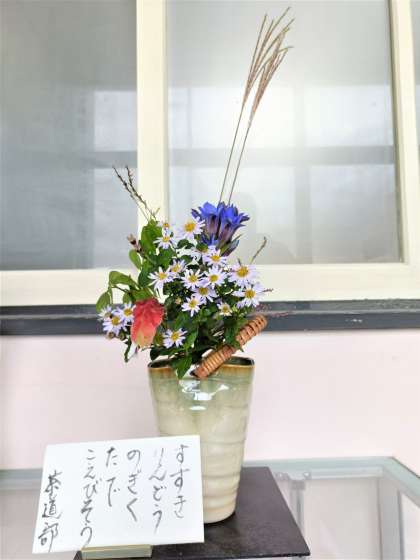 今月も茶道の先生が、校長室前にお花を飾ってくれています。