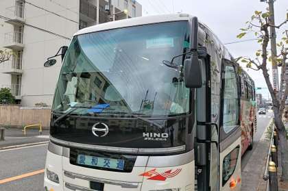 秋の近江八幡に向け、バスが出発しました。サンドブラスト体験や近江八幡市内散策を予定しています。いってらっしゃ〜い。