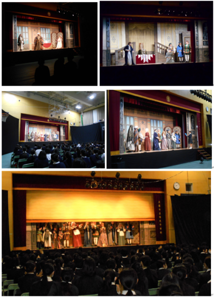 今年の芸術鑑賞会は、ルネサンス期に活躍した有名な劇作家シェークスピアの作品『ベニスの商人』を鑑賞しました。少し難しい内容ではありますが、劇団「芸優座」さんの少しコミカルにアレンジした芸術性の高い演劇の世界にすぐに引き込まれていきました。鑑賞の最後には、生徒会代表からお礼のあいさつがありました。