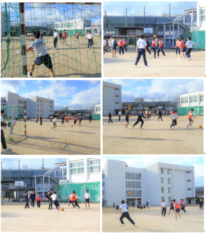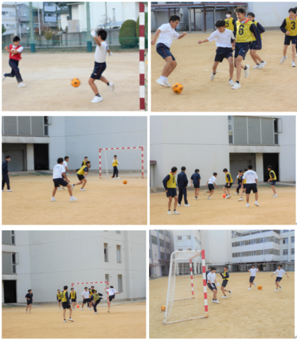 3年生の体育の授業の様子です。サッカーのゲームとテストをクラス交互に行っていました。