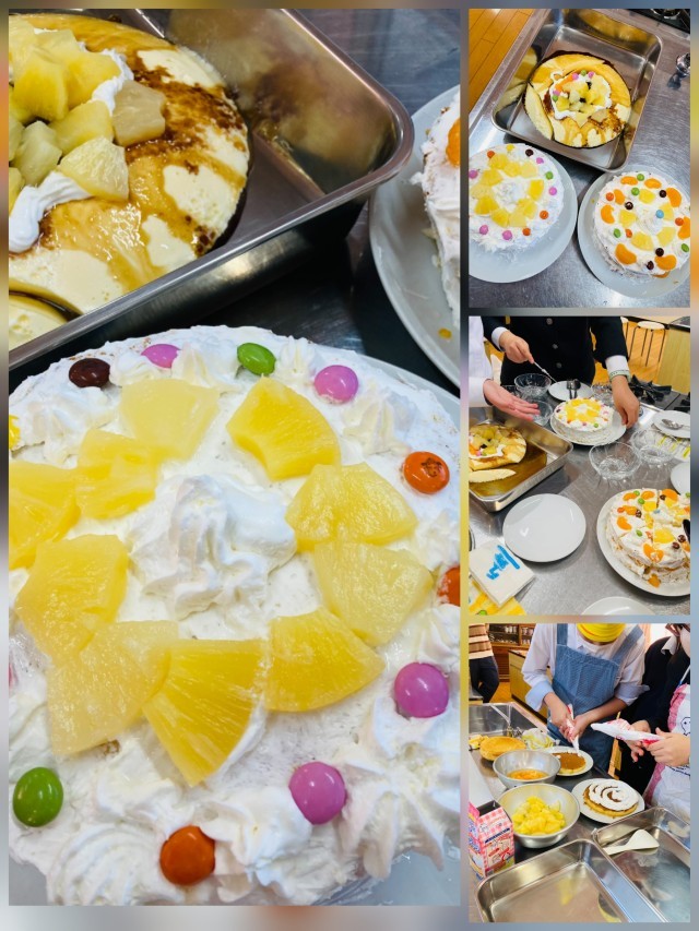 クリスマスケーキとプリンを作った後、英語の歌、雑学クイズ、マジカルバナナゲーム、