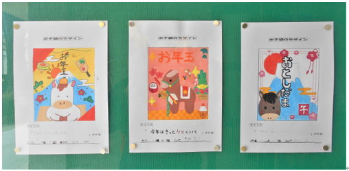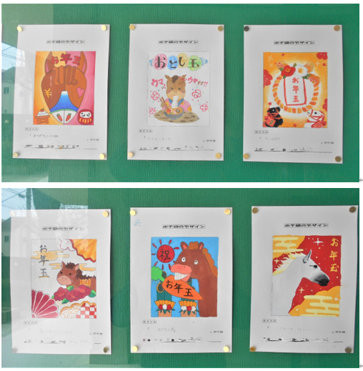 3月になり玄関のディスプレイが2年生の美術科の作品「ポチ袋のデザイン」に変わりました。「ポチ袋」とは、お年玉などのお小遣いをもらうときにお金を入れる袋のことです。中身がどうしても気になる人も多いかもしれませんが、今回はとてもユニークなものから芸術的なものまで見ていて心が楽しくなるポチ袋がそろいました。