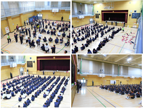 3・4限を使って、1年生は体育館でレク大会を開催しました。体育委員が司会などを担当し、自分たちで競技種目やルールを考えました。みんなが楽しめる今回のような学年行事を、来年も再来年も開催できればいいですね。