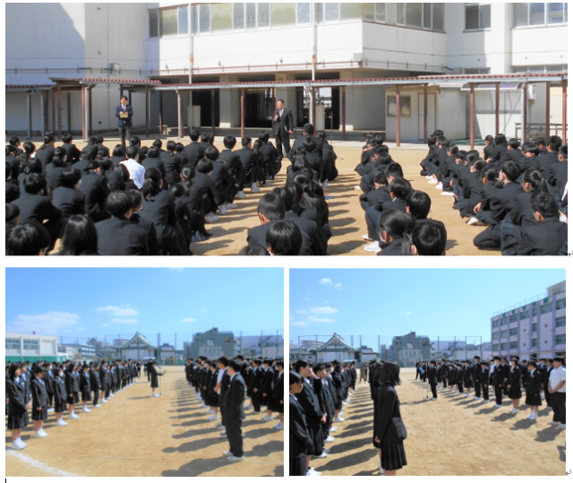 クラス発表があり、新しい環境での生活に「ワクワク」している人、反対に不安の気持ちの人もいるかもしれません。新しい環境をマイナスに考えるのではなく、ポジティブなプラス思考に受け止めて充実した1年を過ごしてほしいと思います。新しい年度を迎えて守ってほしいことを3つ話します。①「学校のルール」を守ること②「時間を守る」こと③「マナーを守る」ことの3つです。みんなが気持ちよく学校生活を送れるようにするために必要なこの3つを守ってください。