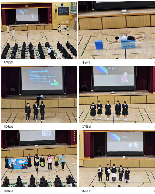5時間目に部活動紹介が行われました。1年生は、2・3年生のすばらしいパフォーマンスをしっかり見ていました。部活動体験入部も今日から始まりました。ぜひ、どれかの部活動に入ってほしいと思います。