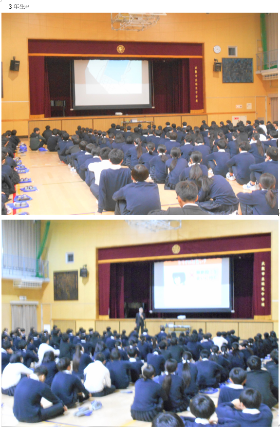 3年生と1年生を対象にして「KDDI スマホ・ケータイ安全教室」が開かれました。スマホを介した代表的なトラブルについてアニメを使ってわかりやすく紹介していただきました。