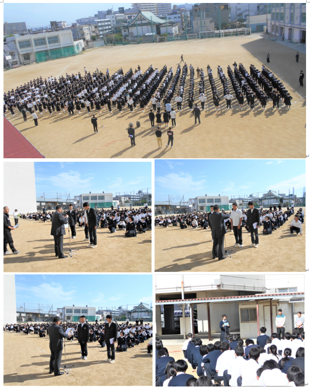 先ほど各学年の代表生徒に認証状を渡しました。以前の集会でも話しましたが、学年・クラスがチームとしてまとまるには、同じ目標を共有し、それぞれが自分の役割を果たすことが大切です。