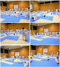 2年生男子体育の様子です。今日は、左右横受け身の練習をしています。