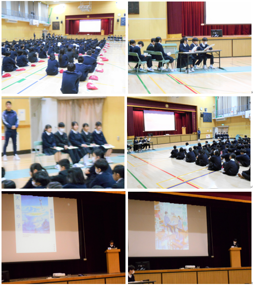 1年生は5時間目、体育館でビブリオバトル クラス予選で選ばれた5人による発表が行...