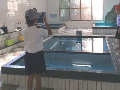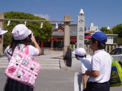 9月9日(火)、2年生では地域に iPad_mini を持って出かけ、「町たんけん」(フィールドワーク)を実施しました。グループごとに割り当てられた施設や保育所、駅や郵便局など、日頃、地域でお世話になっているところを撮影したり、施設の担当者などから説明を受け、熱心にメモを取っていました。
