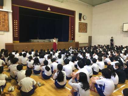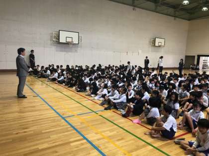 さきほど朝の時間に体育館で児童朝会が行われました。