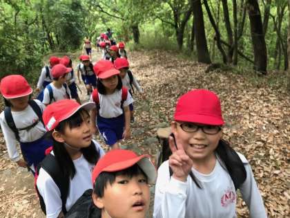 五月山公園にあるローラー滑り台で大はしゃぎの子どもたちです