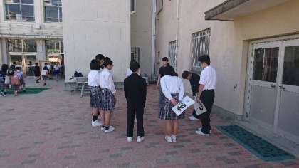 風紀委員会では、月に一週間、朝のあいさつ運動を行っています。