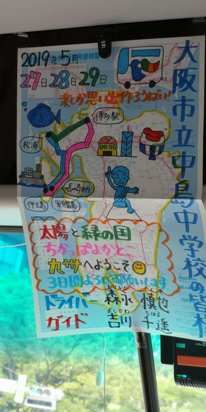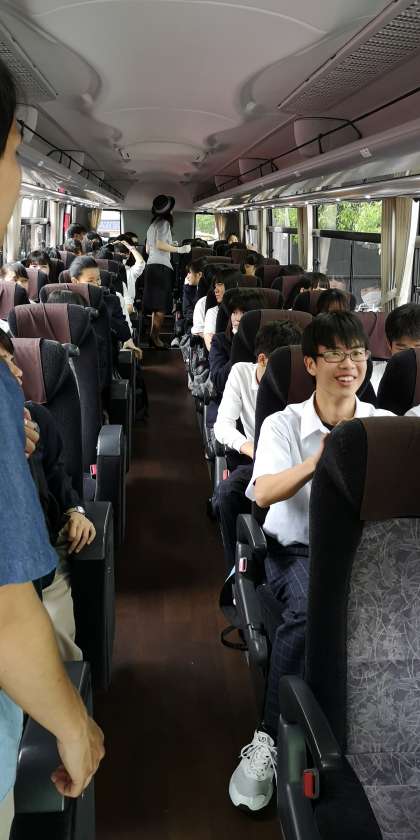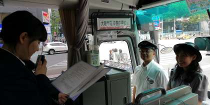 乗車後は学級代表がバス運転士さんとガイドさんに