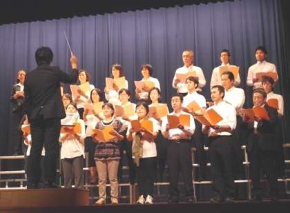 【写真は、昨年度の「中島中学校PTAコーラス」の発表風景です。】