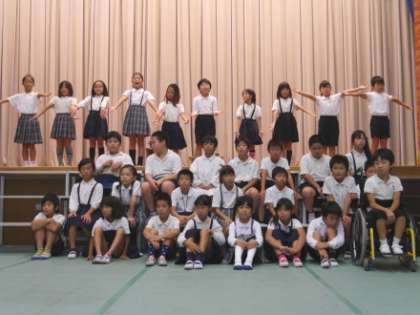 続いて中学年部の3年生はクラス全員で、劇「わたしたちのまち〜おたまさんのおかいさん」【写真左】を演じました。私たちは「すてきなこのまち」のことを、どれくらいみんなが知っているのだろうか?とのメッセージに力を込めていました。地域で子どもたちをやさしく見守ってくださる方々や、温かな地域の支えに、子どもたちは感謝を示してくれました。
