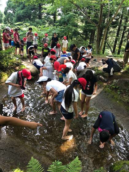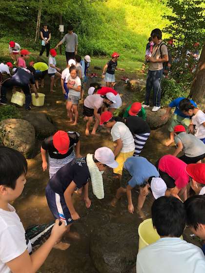 林間学習 魚つかみ