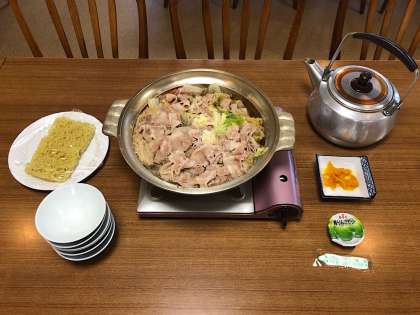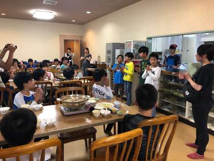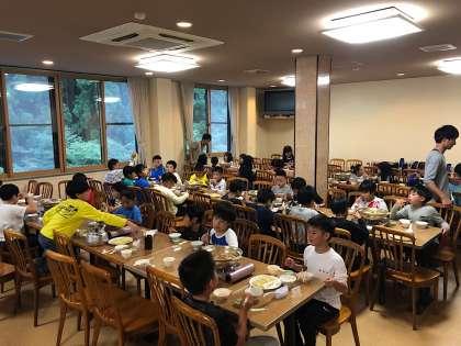 食事係の食前のあいさつで、みんな勢いよく食べ始めました。