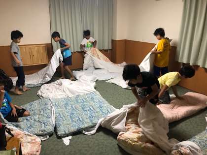 自分が寝た布団は自分でたたみ、朝の準備をそれぞれ進めております。