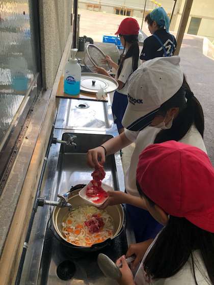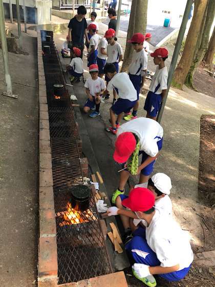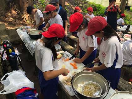 それぞれの係に分かれて、飯ごう炊さん(カレー作り)スタート!!