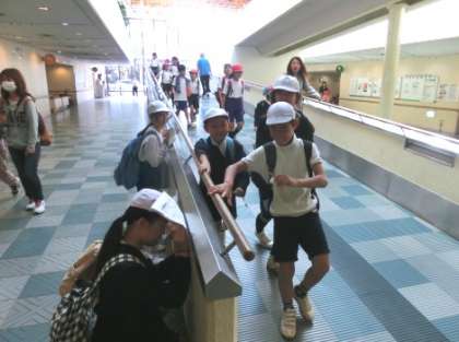 10月14日(火)、台風の影響が心配されましたが、朝には天候も回復し、5年生は長居公園に校外学習に行きました。今年で開館40周年を迎えた「大阪市長居障がい者スポーツセンター」に行き、体育室やプール、トレーニング室などの施設見学を行いました。