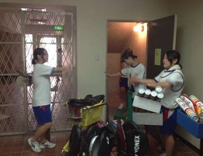 終業式の後、体育館を使用している部活動の生徒が一斉清掃を行いました。本校の体育館は、上下でバスケットボールとバレーボールのコートがとれる2階建て構造になった大きな建物です。一斉清掃は日頃の感謝の思いを込めて、夏の公式戦に挑む前の恒例行事になっています。
