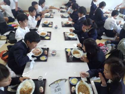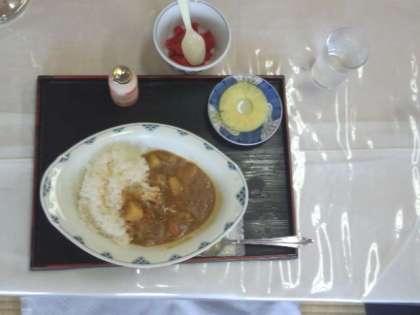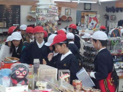 今日の昼食は、カレーライス・パイナップル・乳酸菌飲料でした。食事を終えた班から、みやげ物購入に出向くとあって、あっという間の完食でした。みやげ物購入は、エリアと時間を決めていましたが、あらかじめ購入計画があったのか、手際よく済ますことができました。