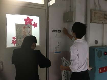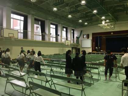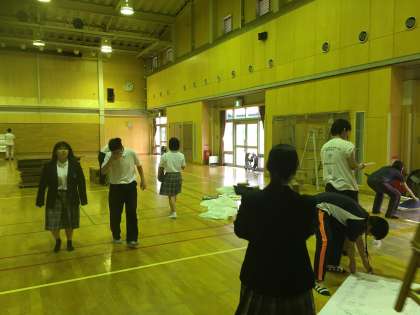 本番を想定した練習を行うために、昨日の放課後、中学校の委員の生徒を中心に会場の設営や控室、展示会場の準備が行われました。
