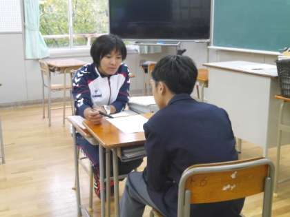 10月22日(水)放課後、9年生では先週の中間テスト終了後から今週にかけて、担任の先生との二者面談を実施し、進路についての相談を進めています。