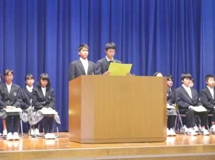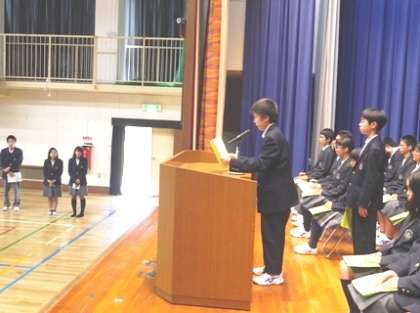 10月24日(金)6限、7年生から9年生では、生徒会執行部役員を選出する「立会演説会及び投票」が行われました。9名の立候補者と応援演説者が舞台上で、堂々とした演説をしてくれました。立候補者からは、「生徒会をリードしてくれた先輩に、あこがれ感をいだいた」「あいさつを交し合い、笑顔あふれる学園にしたい」「異学年との交流を活発にしたい」など、力強い抱負が語られました。また応援演説者も立候補者の素晴らしさをアピールし、説得力ある話ぶりでした。