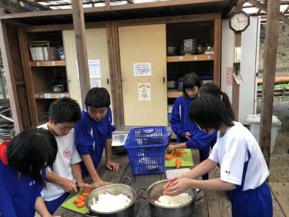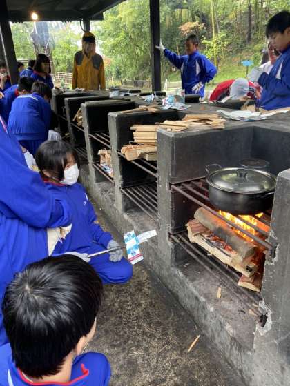 全ての班のかまどに火が入り、生徒たちの期待もふくらんでいます。