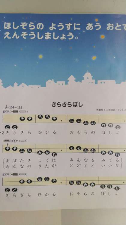 いま1年生の音楽では「きらきらぼし」を学習しています。