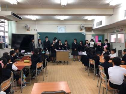 先週の水曜(11/27)は柴島高校から高校生たちが来てくれて、5年生に手話を教えてくれました。