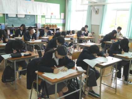 11月4日(火)3限、9年生では「英語能力判定テスト」を実施しました。このテストは、生徒自らの英語力を的確に把握するとともに、その結果を分析することにより、今後の指導に対する工夫改善につなげていくために行っています。