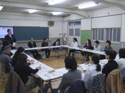 公開授業後の協議会では、本事業に関する趣旨説明や各学校での取組みの情報交換など、踏み込んだ意見交換がなされました。