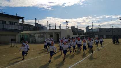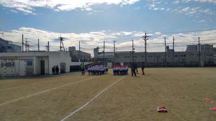 今日の3限目に1年生耐寒かけ足大会を行いました。